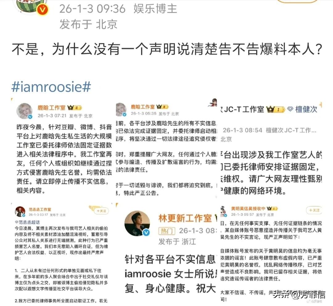 引发动荡后,一众艺人工作室出来发声辟谣。