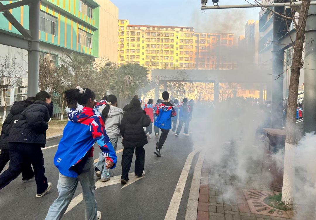 随着急促的警报声响起,模拟火灾疏散演练正式启动。在消防人员与任课教师的联合指引下,学生们迅速弯腰低姿、用湿毛巾捂住口鼻,沿着预定疏散路线快速有序撤离,短短数分钟内便全部抵达操场安全区域。整个演练过程紧张有序、衔接顺畅,实战化检验了学校应急处置预案的可行性与师生的应急反应能力。