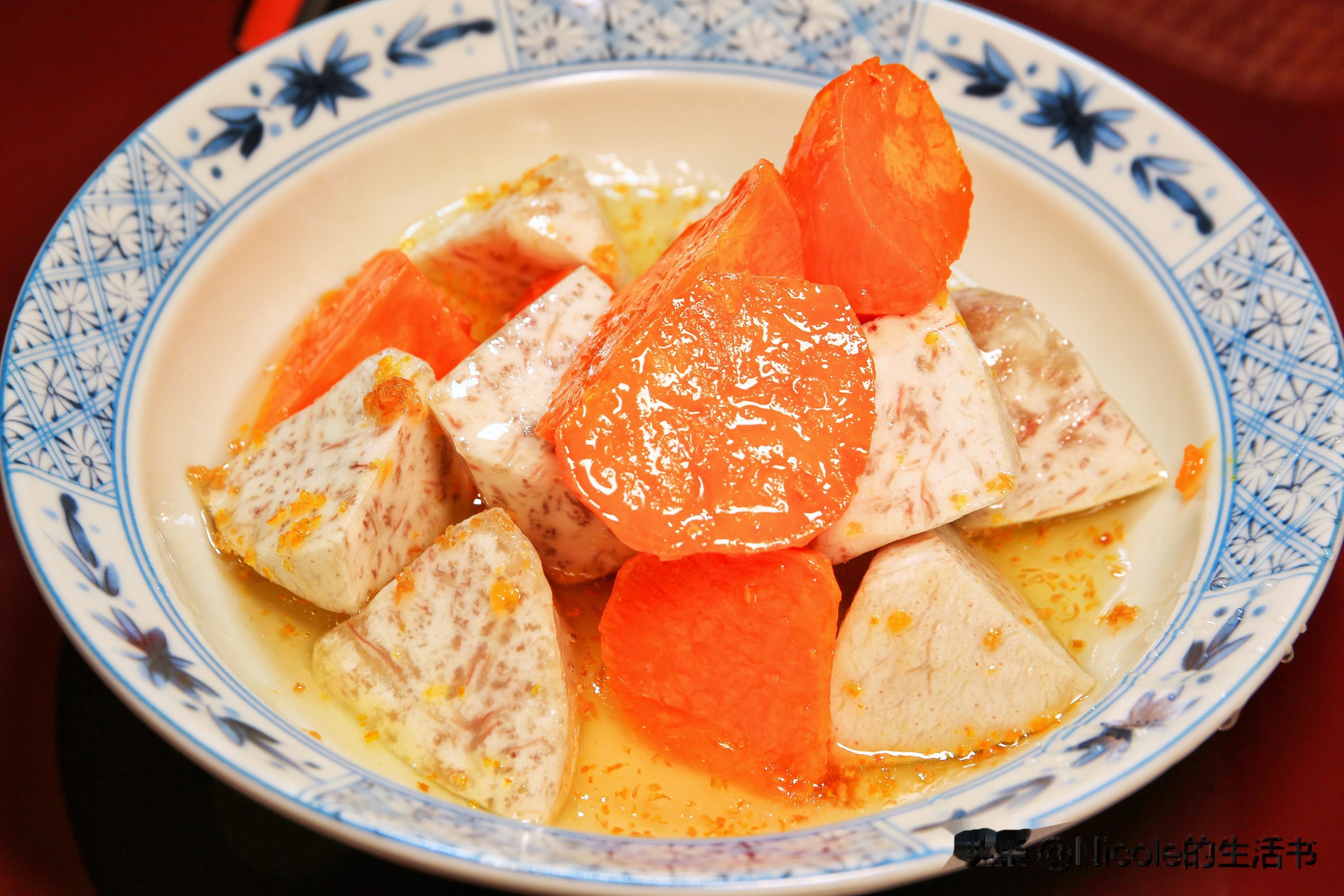 作为潮汕宴席的经典甜点,红薯与芋头经糖油慢熬后,裹着琥珀色的糖衣,晶莹透亮。入口红薯绵密香甜,芋头粉糯回甘,糖衣的甜润不齁不腻,完美凸显食材本味,甜糯交织的口感,寓意着用餐的圆满收尾。