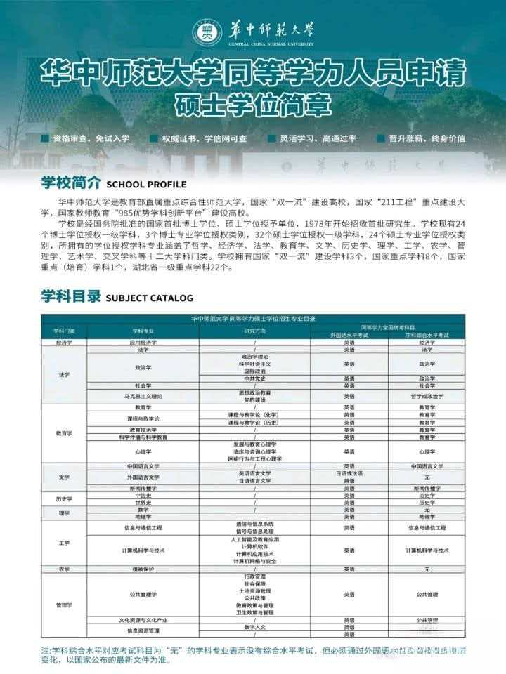 在职提升,学校平台是核心竞争力。对于职场人而言,一份名校硕士学位不仅是学历的跃升,更是职业赛道拓宽、人脉圈层升级的关键筹码。今天,为大家带来武汉两所顶尖高校的同等学力申硕项目,免试入学门槛低,适配不同职场需求,助力你在忙碌工作中实现学历与能力的双重突破。