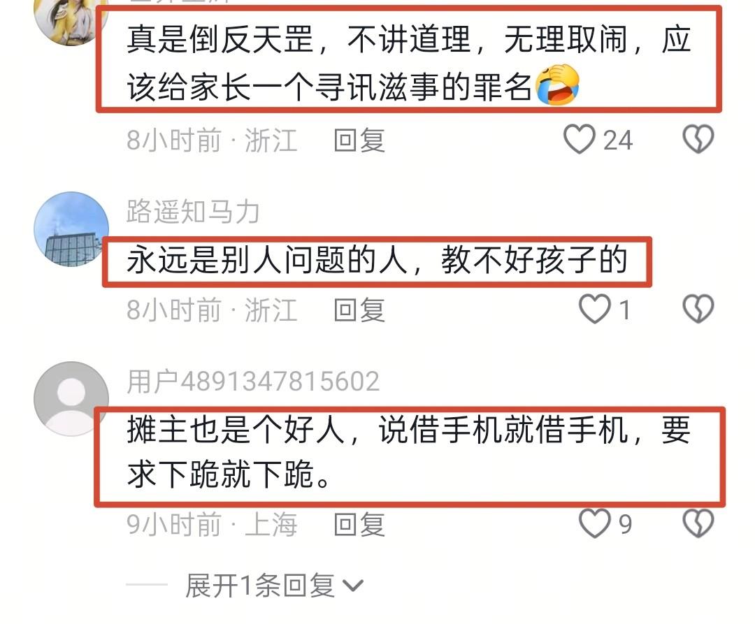 还有网友说: “真是倒反天罡,不讲道理,无理取闹,应该给家长一个寻衅滋事的罪名!”
