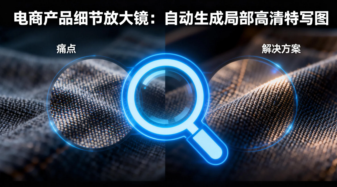 在电商视觉营销中,产品核心区域的高清特写是影响用户决策的重要环节。不少美工常会遇到这类问题:实拍图无法清晰抓取服装面料纹理、3C产品按键缝隙等细节,普通3D软件渲染特写时参数调整复杂,输出图质感模糊。深究成因,实拍受限于棚拍设备、光线布局,后期补细节需手绘修复,耗时久且还原度低;传统3D工具则需单独设置特写视角、反复渲染,等待周期长。这种情况不仅拉长设计周期,还会导致运营选品、测款阶段因细节图不符需求反复沟通,打断设计连贯性,最终影响产品上线节奏,甚至因详情页细节不足引发用户跳失。