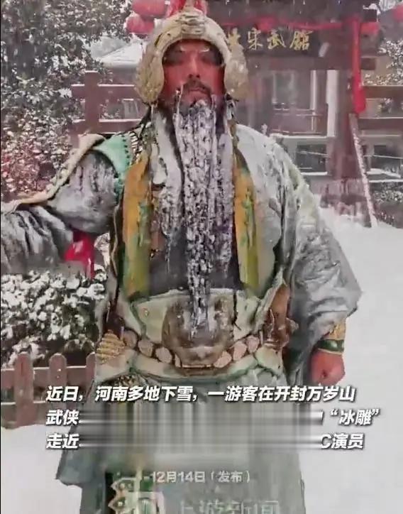 突然想起昨天看到的另一条新闻热搜,某地近日开始下雪,游客发现雪地里一座关羽的“冰雕”,走近才发现是一位正在表演站岗的NPC演员,直呼“太敬业”。