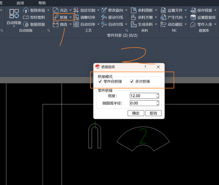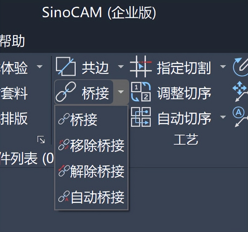 桥接是一项很普遍的加工工艺,它是指零件与零件之间通过工艺连接起来,在套料软件中作为一个整体去切割,主要是为了防止零件变形翘起导致撞枪,或者是小零件掉落胎架等。