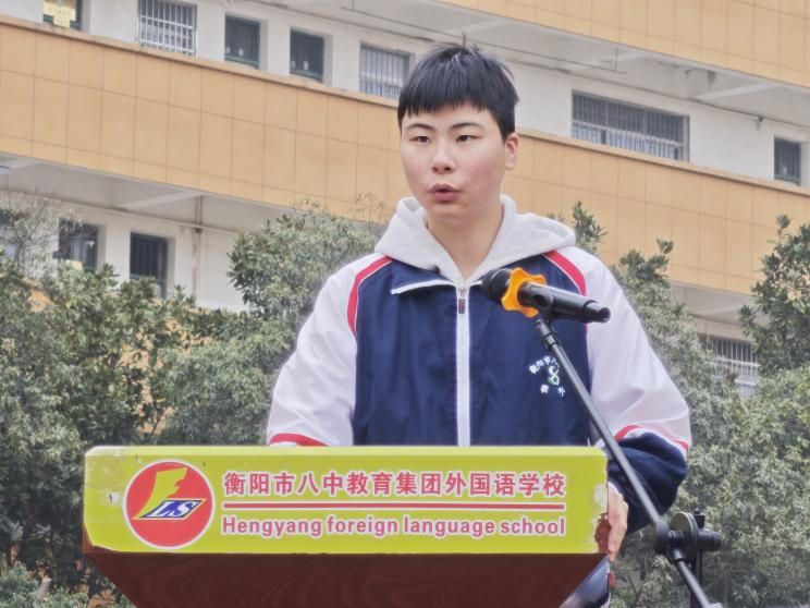 初三年级组长肖泳东老师暖心分享成长锦囊,鼓励学子以追问探新知、以拆解克难题、以协作赴远方,不负韶华逐梦前行;初二年级组长李毅老师承诺坚守育人初心,寄语学子脚踏实地逐梦前行。初三学生代表472班康锦灿发出倡议,号召各年级学子立足新起点,以奋进姿态逐梦前行;初二学生代表481班江临风以“春”为喻,寄语同窗以向上姿态、踏实积累绽放青春光彩。