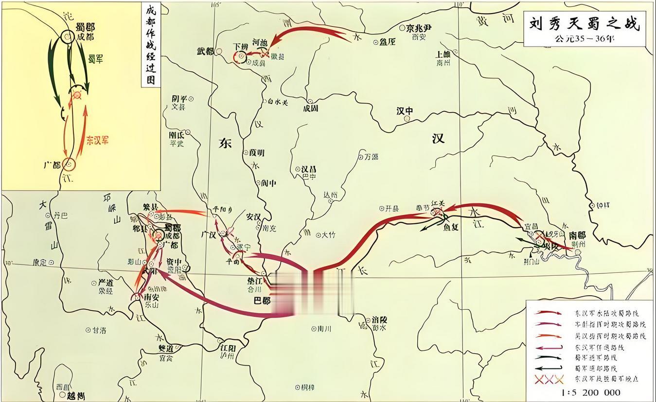 刘裕猜对了,谯纵果然判断晋军的主攻方向跟当年刘敬宣一样是内水,所以派辅国将军、梁州刺史谯道福率主力北上,重兵防守于内水重镇涪城。如今获悉晋军在外水路线的水军规模也不小,他急忙调成都附近的万余兵力,在距离成都两百里的彭模驻防。