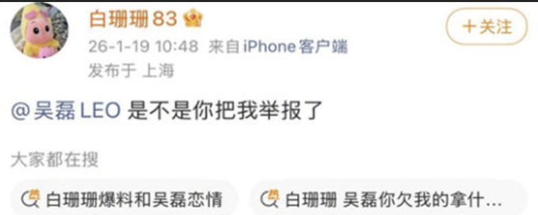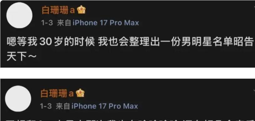 如果事情到此为止,或许还只是一场无聊的闹剧。 但“白珊珊a”接下来的操作,把自己彻底送进了死胡同。 她的首发账号很快因投诉被封。 可她似乎觉得,这是吴磊在“捂嘴”。 于是,她换了个小号,再次登场。 这一次,她的炮火开始无差别扫射。 除了继续纠缠吴磊,她还将赵露思、何猷君等毫不相干的艺人拖下水,声称掌握他们的“猛料”。