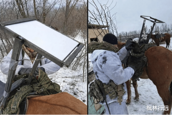 乌方提供的视频显示,占领军甚至将星链终端固定在马背上。