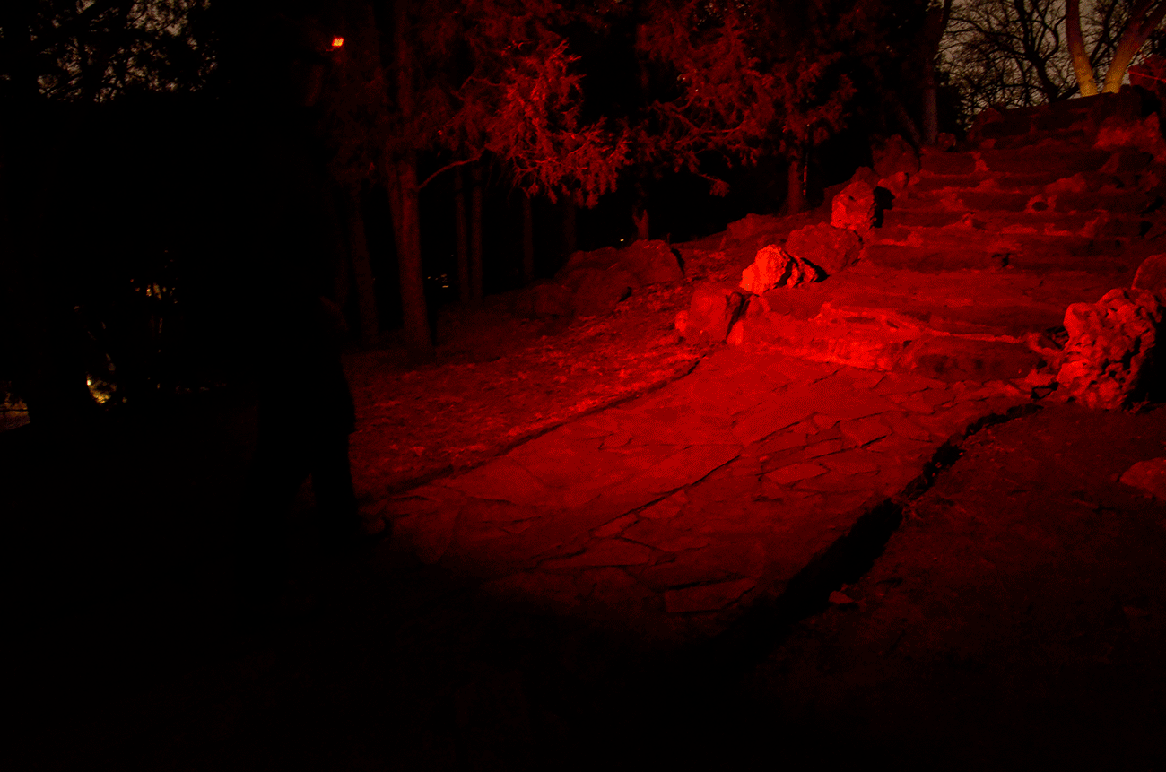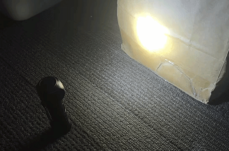 从光斑表现来看,主灯白光光斑呈规整圆形,中心亮度高,边缘过渡柔和,无明显杂光与暗角,中心聚光区域可清晰照亮细节;副灯光斑为偏暖色调无明显边界的圆形,亮度适中,光线柔和不刺眼,照明范围较大,内部亮度过渡均匀;红光光斑与泛光类似,整体呈红色,也是大范围的匀光照明表现。