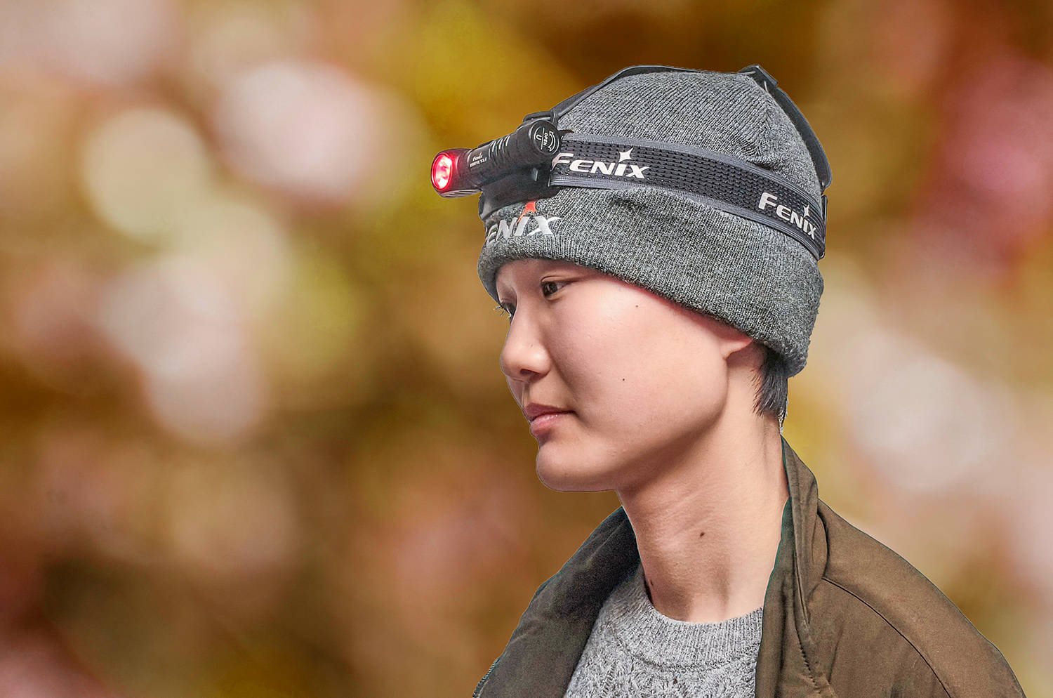 头带双向可调,配备了快速插扣与日字扣的双重调节结构,充分考虑了单手操作与戴手套使用的户外场景需求,适配 50-65 厘米的头围,或直接固定在安全帽上使用,多处FENIX的荧光反光LOGO,具有很好的弱光提示作用。