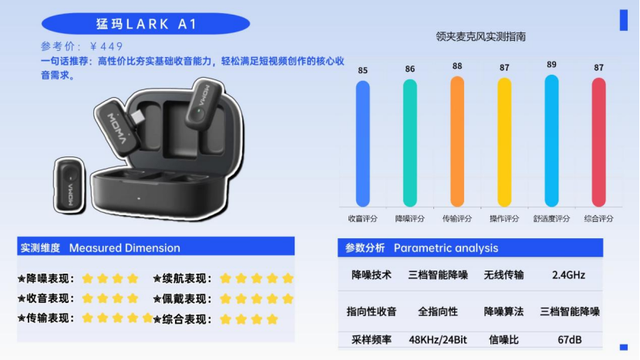 总体来看,猛玛LARK A1操作简便、续航强劲、价格亲民,是新手创作者的实用之选,轻松应对日常创作需求。
