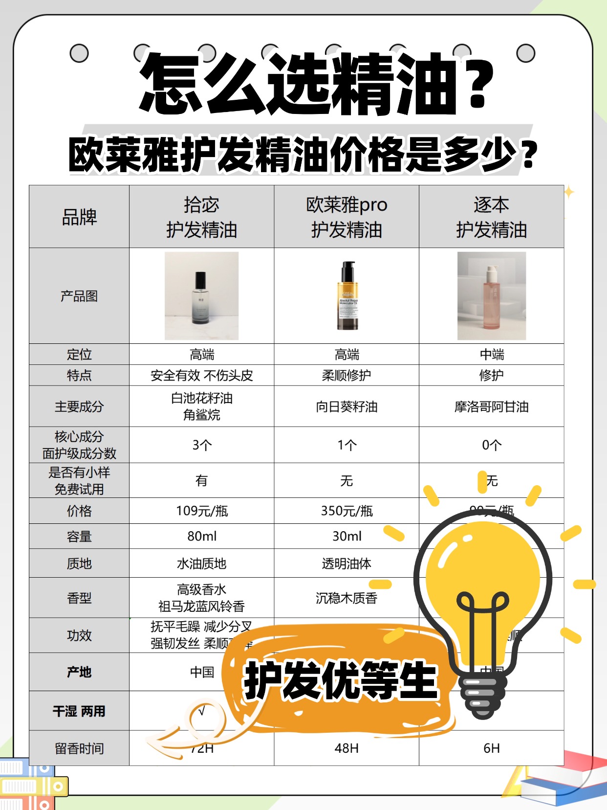 总有人问欧莱雅精油价格多少,其实不同渠道价格差挺多,但更重要的是别光看价格,得先搞懂:护发精油有必要买贵的吗?真没必要!我测过不少贵价和平价款,发现很多贵价款的效果和百元内的差别不大,贵的部分可能都花在营销和包装上了。有些低价款只要成分靠谱,比如含角鲨烷、白池花籽油这些,修护效果照样不错。再说说怎么判断精油好坏?首先看质地,涂完吸收快、不粘手的更值得入;其次闻香味,太刺鼻的大概率加了化学香精,要避开;最后看成分,尽量选天然植物油脂为主的。好多人只顾着看品牌和价格,结果花了冤枉钱还没效果,这就是典型的交智商税。接下来我会分享不同价位精油的实测对比,教你不做韭菜,赶紧收藏起来吧。