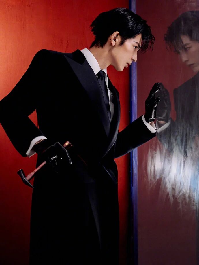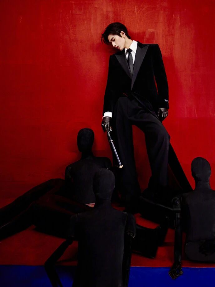 最后敲个重点:All Black 的男模冷冽感,从不是 “穿黑装装酷”,是 “材质分层堆质感 + 骨相撑住柔材质 + 细节钉住冷感线”—— 黑是底色,丝绒是质感,细节是针脚,他的骨相是冷冽的魂。