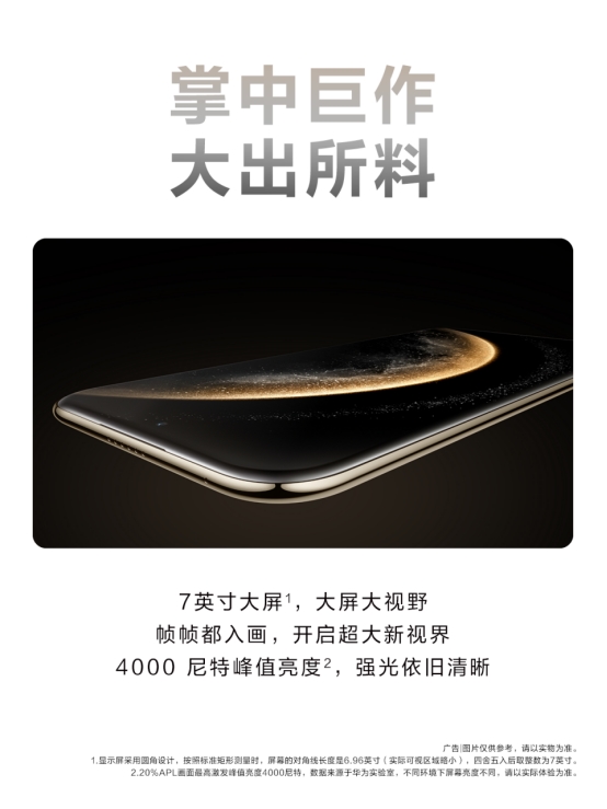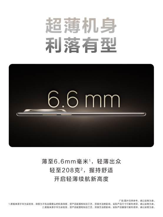 当然,华为Mate 70 Air最颠覆认知的还是“轻薄大屏”带来的视觉冲击——在仅6.6mm厚、208g重的机身中,融入了一块近年来罕见的7英寸超大屏,成为华为Mate系列迄今最薄的直板手机。这样的轻薄度,配合Mate家族标志性的前后微曲面机身、圆润R角设计,以及81.5mm的机身宽度,握持时完全没有传统“超大屏手机”的笨拙感。