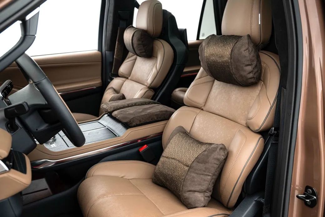 林肯领航员首次在二排引入复式大沙发 ——“统帅座”。全车座椅选用苏格兰 Bridge of Weir 专为林肯领航员定制研发的 Opulence 皮质,不仅触感柔软细腻,还融入了加热、通风、按摩等贴心功能。同时,配备专属全尺寸中央吧台、二排控制屏与无线充电装置,让后排乘客仿佛置身于头等舱。
