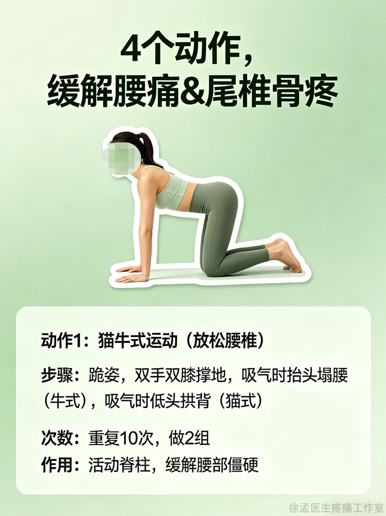 💪4个动作,缓解腰痛&尾椎骨疼(跟练版!)