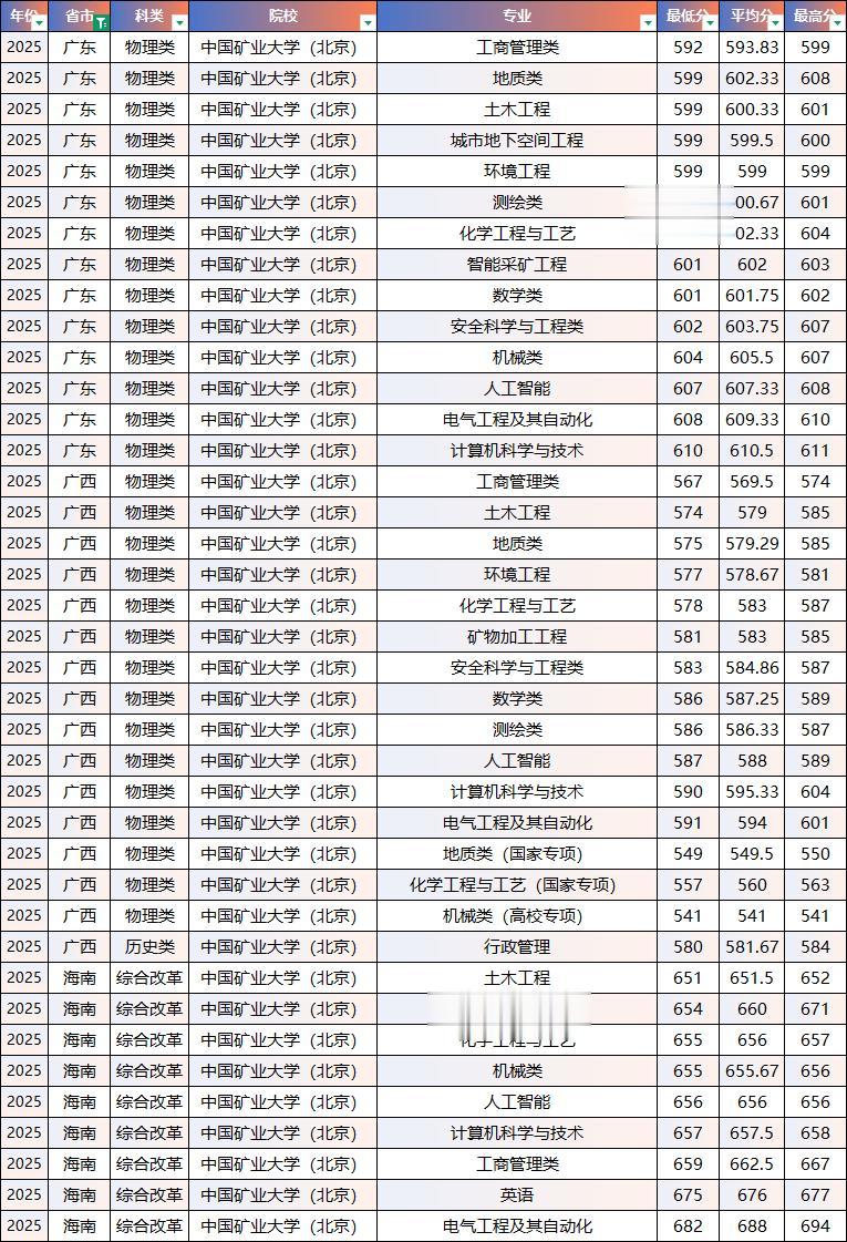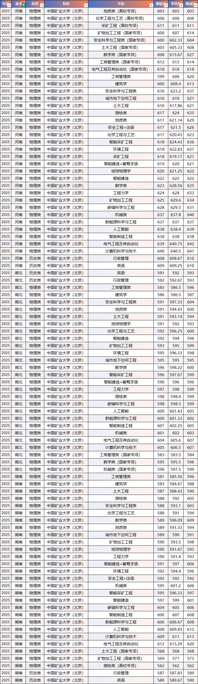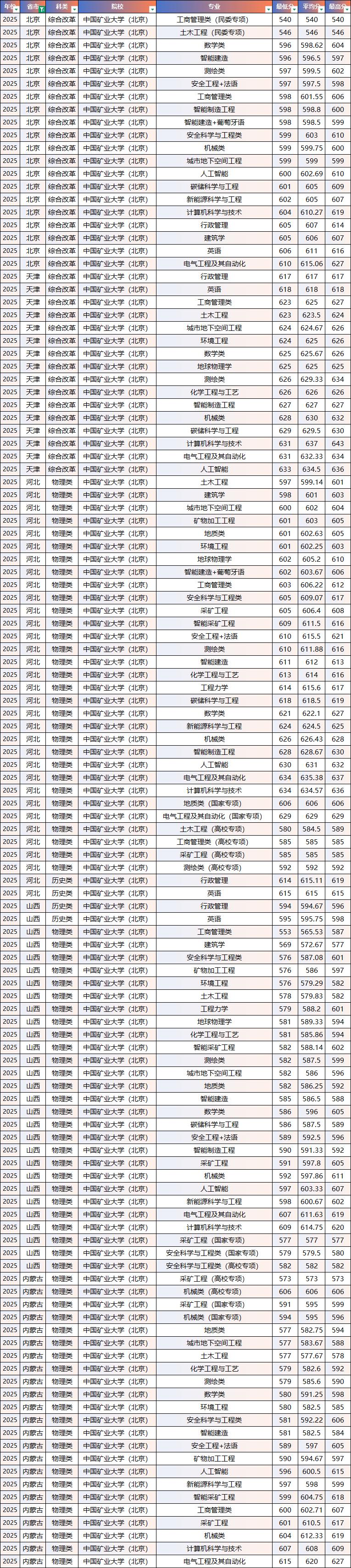 2025年中国矿业大学(北京)院校录取分数线数据汇总!择校参考