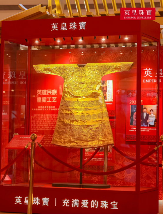 目前,这款冲刺世界纪录的黄金龙袍已在深圳万象城短期展出,吸引众多市民与艺术爱好者驻足赏鉴。英皇珠宝同步推出【金绣】系列珠宝,将龙袍同款非遗京绣金丝工艺融入设计,让东方美学触手可及。