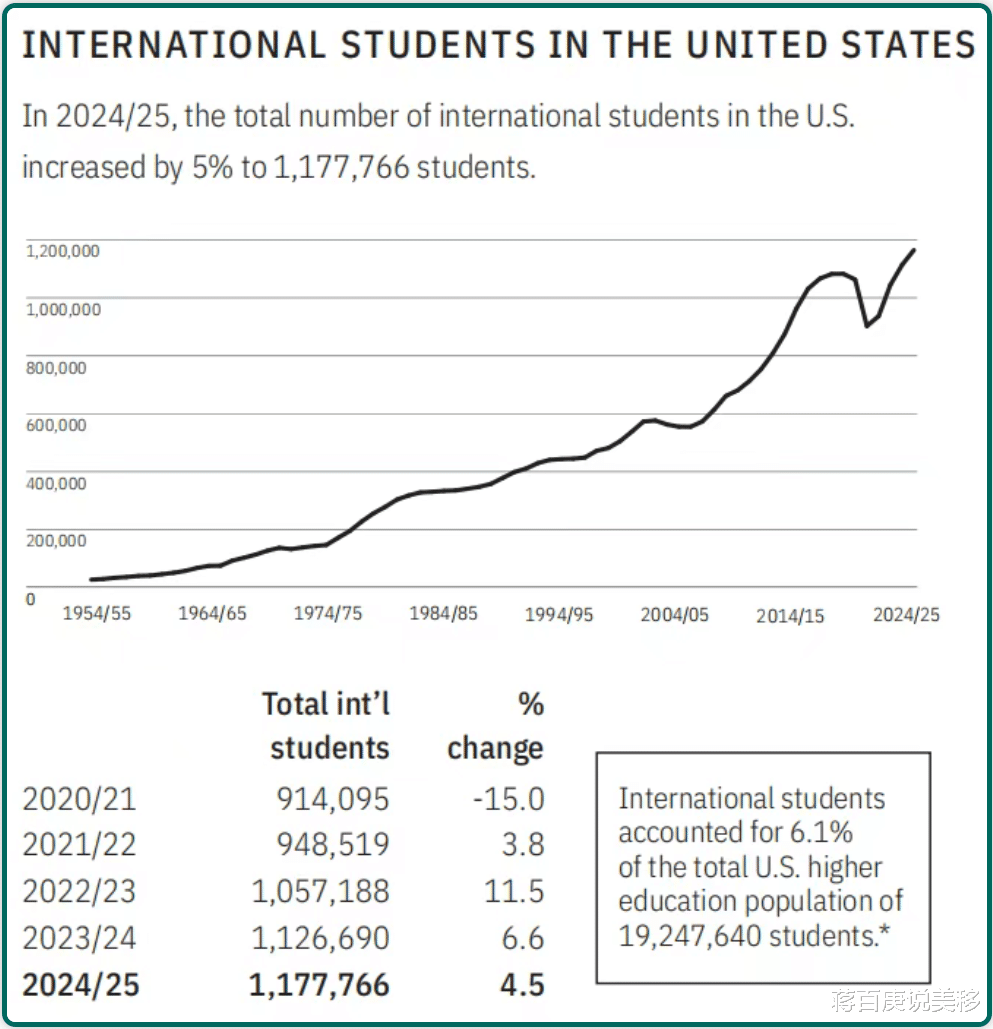 近日,美国2025年《门户开放报告》发布,数据显示今年在美留学人数持续回升,达到了1,177,766人,比去年增长4.5%。在此背景下,今年中国留学生约有26.5万人,比去年下跌了4%左右。在赴美就读的中国留学生中,今年有78,583人就读本科,较去年下降10.2%;就读研究生的人数为120,229人,较去年下降2.1%,占中国总赴美留学人数的45.2%。