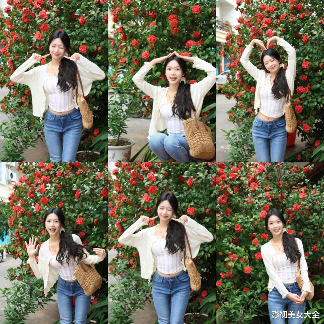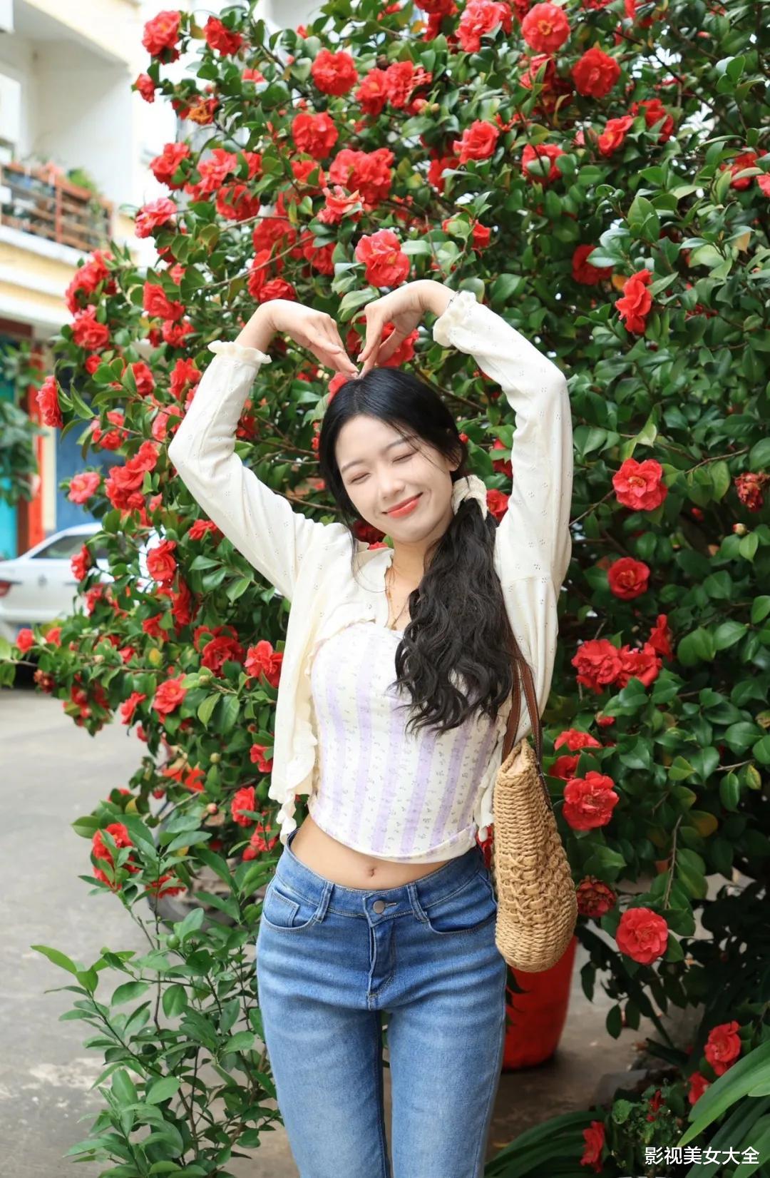 站在花墙前拍照,可以把身体稍微歪向一侧,双手自然交叉放在身体一边,再对着镜头笑出来,这样的拍照姿势很显可爱,画面不呆板,人也会看起来特别上镜。