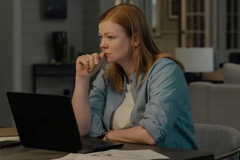 作为悬疑剧,《都是她的错》的技术水准堪称惊艳。它没有依赖一惊一乍的反转,而是将“失控感”融入生活肌理:玛瑞莎指尖无意识摩挲手机壳的小动作、发现地址错误时骤然加快的眨眼频率、面对丈夫谎言时瞬间变脸的微表情,莎拉·史努克用精准的演技,将母亲的焦虑与绝望具象化。