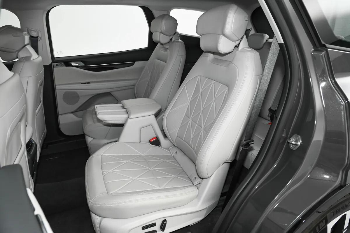 车内提供2+2+3与2+3+2两种座椅布局,可根据家庭实际使用习惯灵活选择。2+2+3布局的 二排为两个 独 立 悬浮式座椅,中间预留了宽度约200mm的过道,老人、孩子上 下 三排时无需弯腰侧身,通行相对轻松;2+3+2布局则在日常五座使用状态下,后备箱空间更 具优势,适合经常需要拉载大件物品的家庭。 二 排座椅配备190 毫 米长滑轨,前后调节范围较广,无论是调整乘坐姿势,还是安装、拆卸儿童安全座椅,都显得比较从容。 三排空间在同 级 别车型中表现较为 稳 妥。将 二排座椅调整至预留一拳左右的距离后,身高175cm左右的成年人乘坐 至 三排,头部仍有两指左右余量,腿部也不会明显顶到膝盖,不会出现过于局 促 的感受;