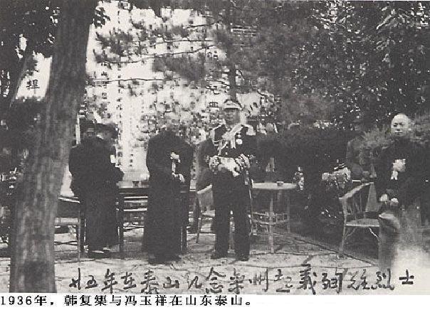 1936年。韩复榘(左二)冯玉祥(左三)泰山纪念滦州起义殉难烈士