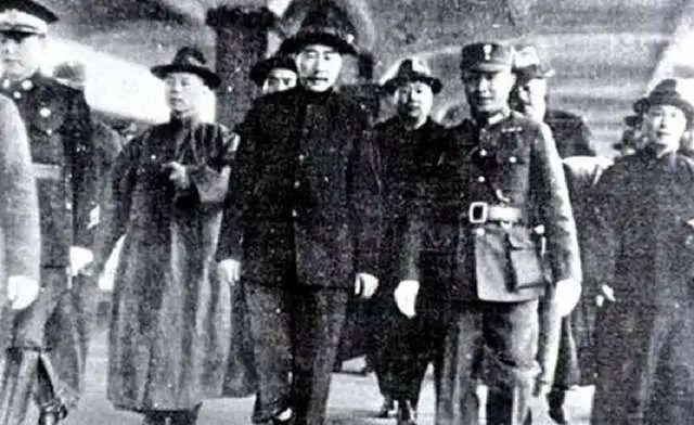 1937年7月30日何应钦(右二)在南京火车站迎接韩复榘(中)