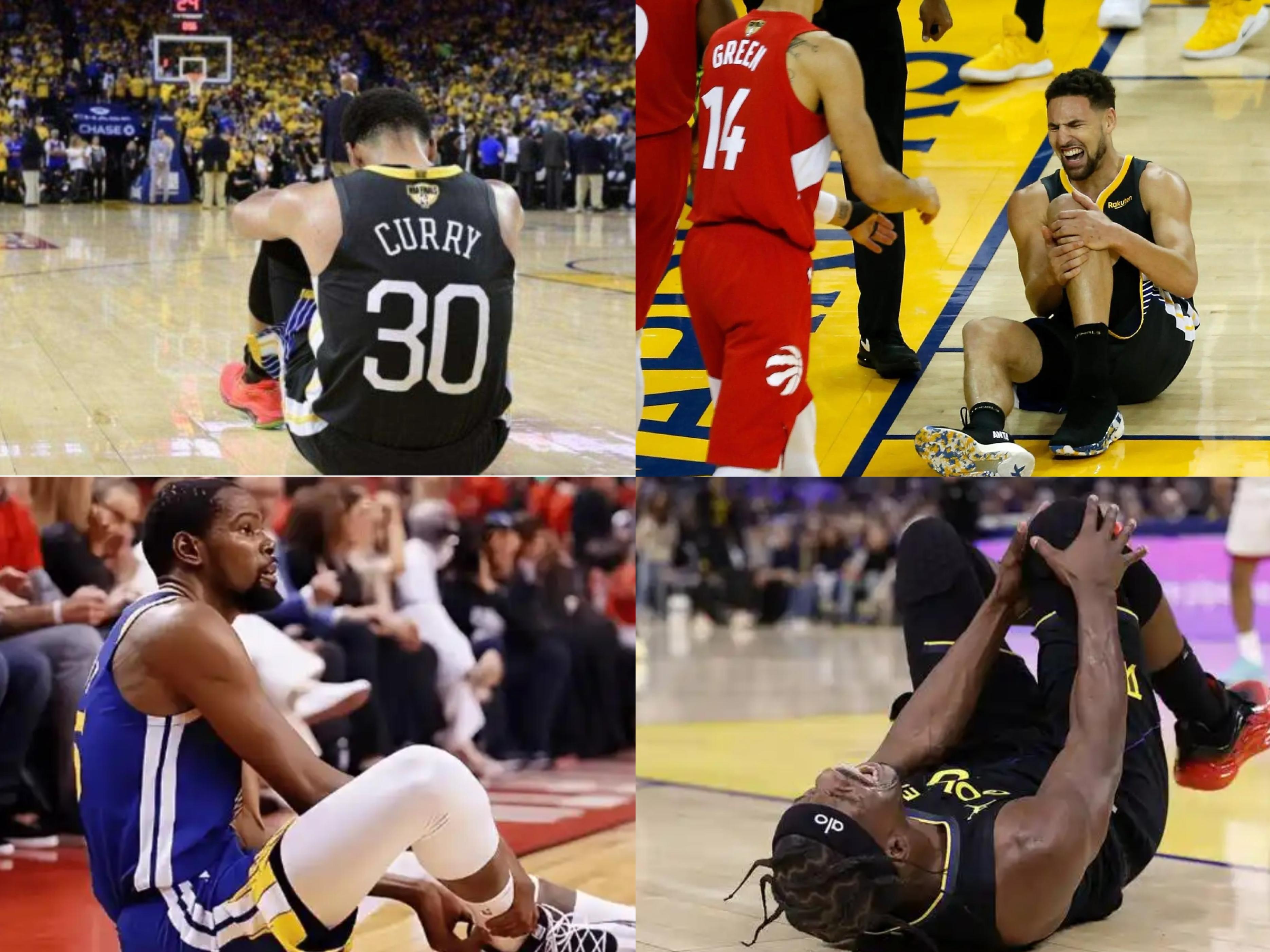 虽然库里除了19-20赛季外没有遭遇过严重影响出勤的大伤,但仿佛如诅咒一般身边的克莱、杜兰特、巴特勒们都遭遇了改变职业生涯的严重伤病。