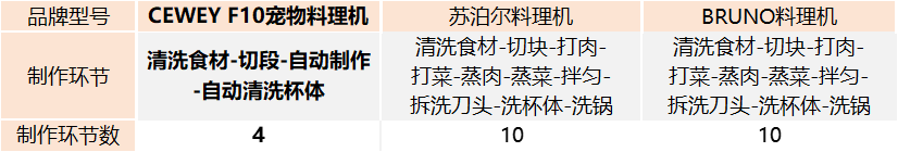 我把 CEWEY F10宠物料理机和另外两台苏泊尔料理机、BRUNO料理机摆在一起测试。它们的设计思路完全不一样,所以使用效果也差得挺远。
