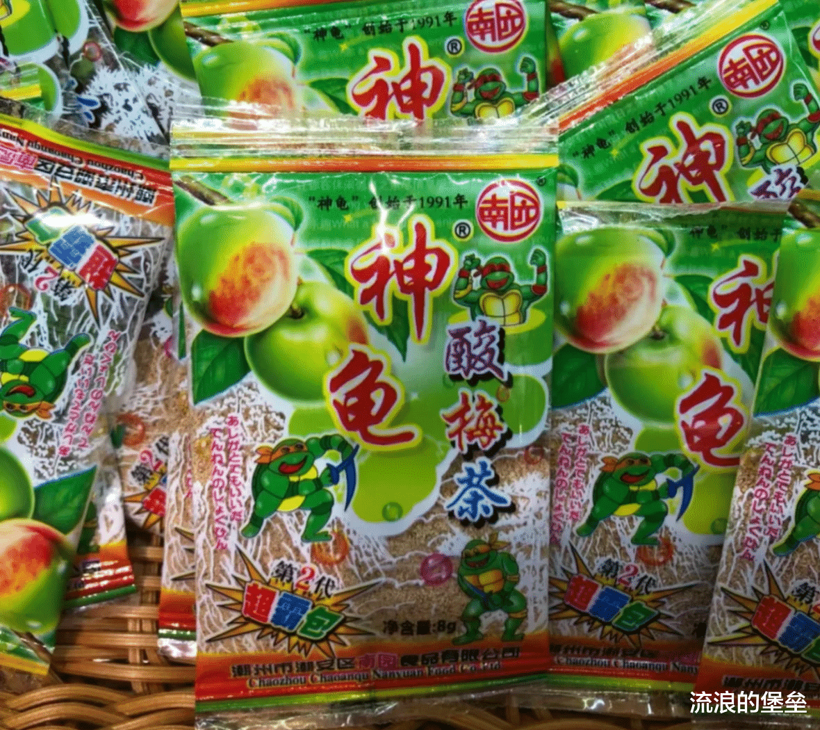 神龟酸梅茶,现在早就没有了,小时候都直接吃,现在都是酸梅粉,冲泡成酸梅汤的那种,不好吃了,也不是那个味道了!