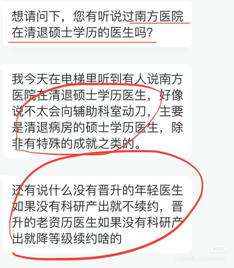 近期,某社交平台上有网友爆料:南方医院计划清退部分硕士学历的医生,没有科研产出的年轻医生不再续约,老资历医生没有科研产出则降等级续约。