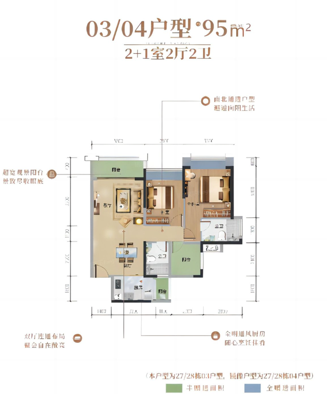 项目主力户型在95-109㎡区间展开空间革命,以"全明格局+模块生长"重构三房价值: