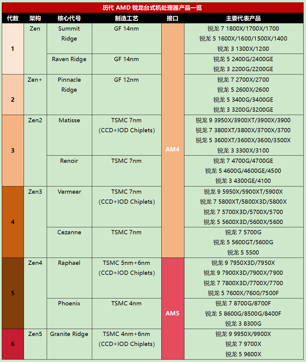 01 、先来看看锐龙台式机处理器的“族谱”