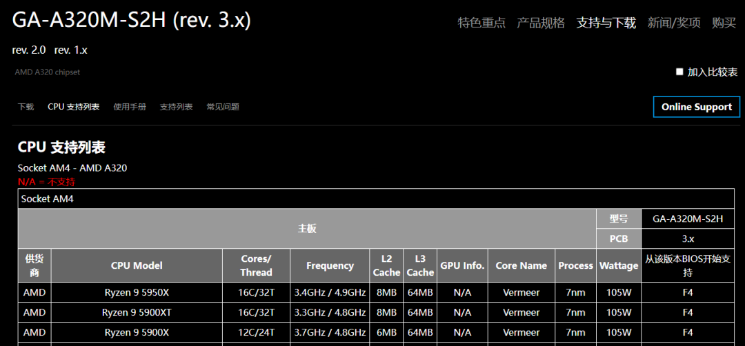 ▲古老如入门款A320主板都能支持锐龙5000处理器