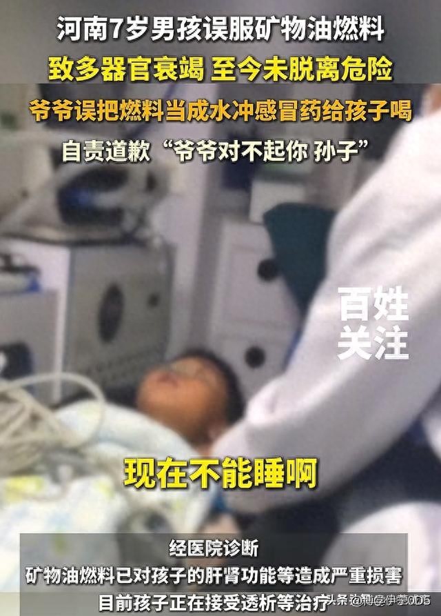 近日,媒体报道的一起悲剧让人揪心不已:河南一名7岁的小男孩因感冒在家休息,爷爷在给他冲服咳嗽药时,因家中桶装水刚好用完,便顺手拿起放在旁边的一瓶“矿泉水”使用。然而,那瓶看似普通的矿泉水瓶里,装的竟然不是水,而是矿物油燃料!就因为这致命的一误,男孩误服后被紧急送医,目前出现肝脏、肾脏等多个器官衰竭,正在儿童医院接受透析治疗。