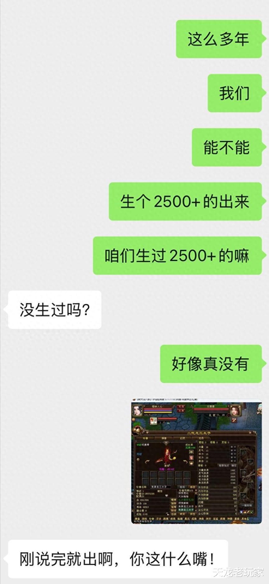 这位老铁正在和好友说这么多年没出过2500,这波能不能实现一下。