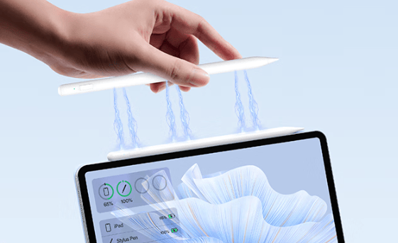 这款电容笔采用了LDS无缝一体化的机身设计,外观材质为白色塑胶材质,触感光滑且抗污能力强。并且书写时,笔尖流畅顺滑,配合自动唤醒功能,轻轻提笔即可启动,无需额外的按键操作,使得书写体验更加流畅自然。此外笔身重约13克,握持起来很轻盈舒适,避免了手腕的疲劳感。在充电方面,这款电容笔支持磁吸式充电,只需将笔靠近iPad即可自动吸附并开始充电。充满后续航可达17h,不过它兼容的iPad机型有限,购买前要确认是否兼容自身设备,若不兼容需要配合充电舱使用。