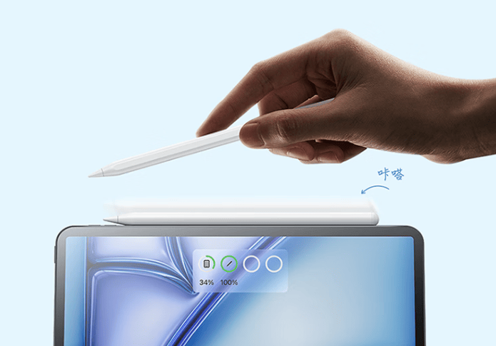 充电方面搭载Type-C有线快充,约20分钟即可充满,支持连续使用8.5小时。并且搭配智能三灯提示电量,避免电量焦虑。还有磁吸功能可吸附平板,不容易丢失的同时更便携。此外笔身材质为铝合金,长时间使用也干爽不油腻,但笔身重量为15.45g,拿在手上分量较重,所以长时间书写可能产生疲劳感。