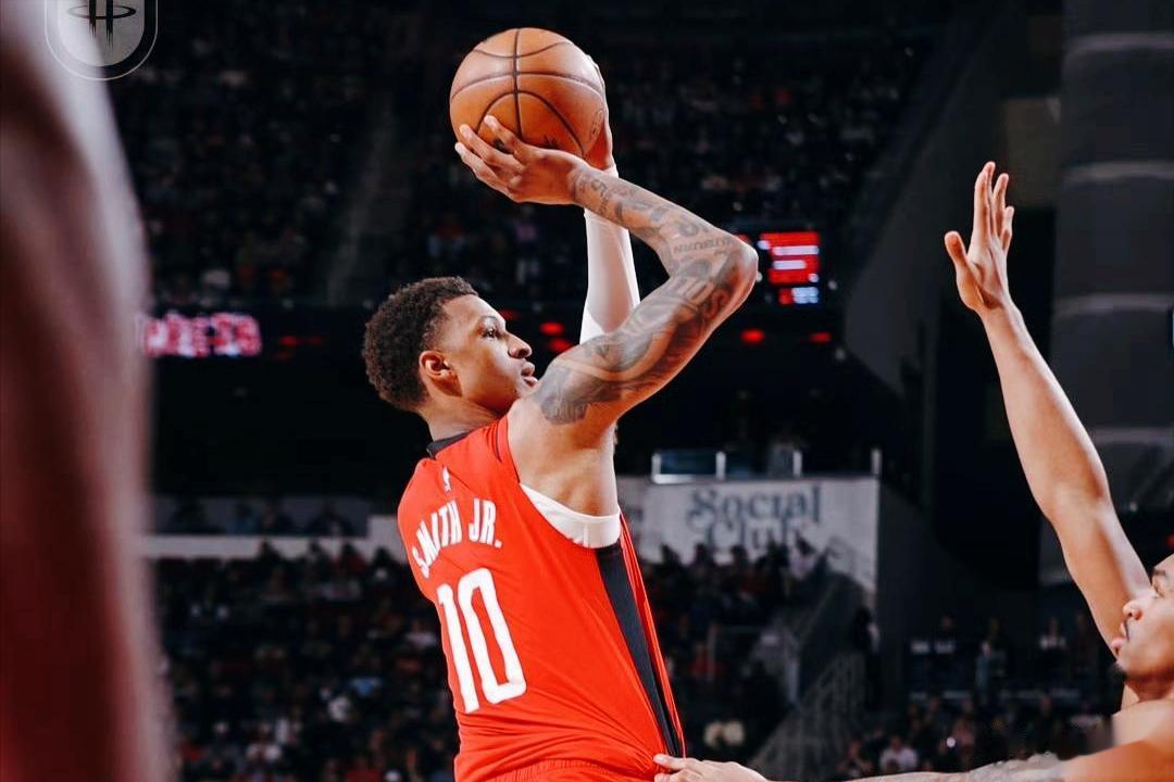 火箭首发:阿门·汤普森(得分后卫)、奥科吉(得分后卫)、杜兰特(小前锋)、史密斯(大前锋)、申京(中锋)