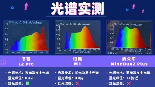 二、光谱实测:紫光激发vs蓝光激发,光源技术决定护眼深度