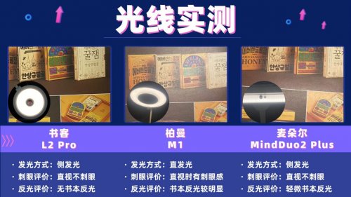 本次结合主观直视体验+桌面反光程度,评估三款台灯的光线舒适度。