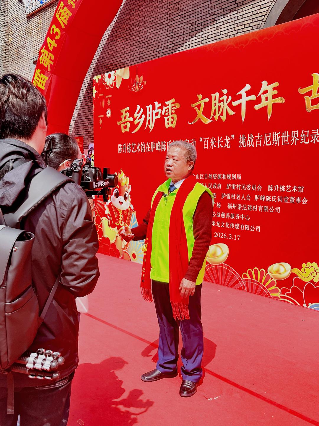 3月17日上午,正是福州一年一度的农历正月廿九拗九佳节,一场融合传统与公益的民俗盛宴在福州胪雷村震撼上演。由陈升栋艺术馆等单位主办、福州市福延公益慈善服务中心支持,福州知名策展人、福延公益荣誉理事长李靖策划的百米米龙民俗活动,以磅礴之势惊艳闽都、火遍全网,不仅吸引了海内外游客齐聚打卡,更以滚烫乡情召唤五湖四海闽籍儿女跨越山海奔赴而来。活动全网阅读浏览量突破2000万,胪峰陈氏祠堂同步跻身福州文旅热门地第八名,成为闽都非遗活化传播的标杆案例。本次活动全部物料、运营及舞台费用,由著名慈善家、陈升栋艺术馆馆长陈升栋全额捐赠,以8吨福米筑就百米龙身,以公益初心赋能文化传承。