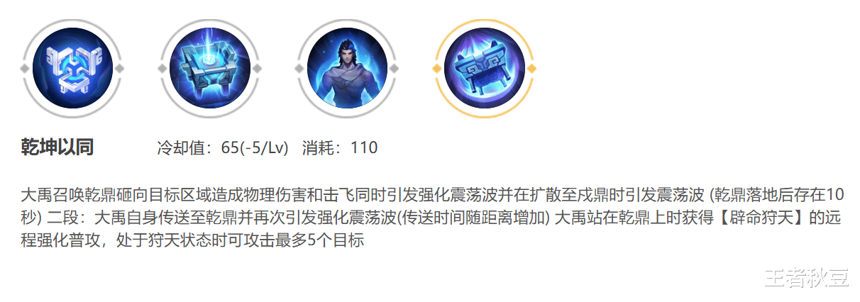 控制:鼎可以造成伤害和击退,是大禹最常用的控制方式。