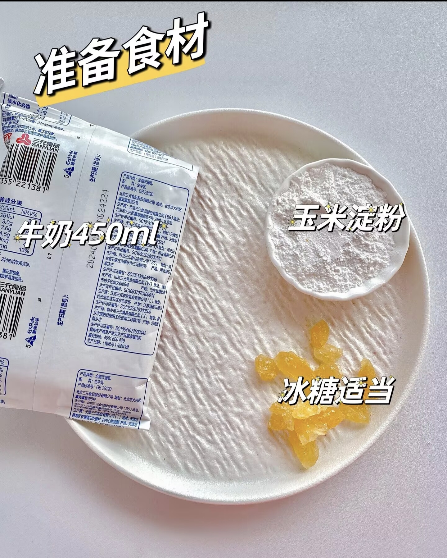 做椰蓉奶糕的材料都是超市随便就能买到的寻常货。纯牛奶一盒250毫升,椰浆200毫升,这两个是主角,缺一不可。玉米淀粉60克,这是让奶糕凝固成型的秘密武器。白糖40克,甜度刚刚好,喜欢甜一点的可以再加个十克八克。吉利丁片10克或者吉利丁粉10克都行,这是让口感更Q弹的关键。最后再来点椰蓉,大概30克就够,用来裹在奶糕表面,既好看又增香。家里要是有炼乳,加一勺进去味道更浓郁,没有也无所谓,照样好吃到飞起。