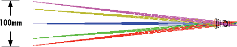 图3:根据光的不同波长,存在多种不同的最佳焦点。此图显示了三种不同波长的三个聚焦点 。