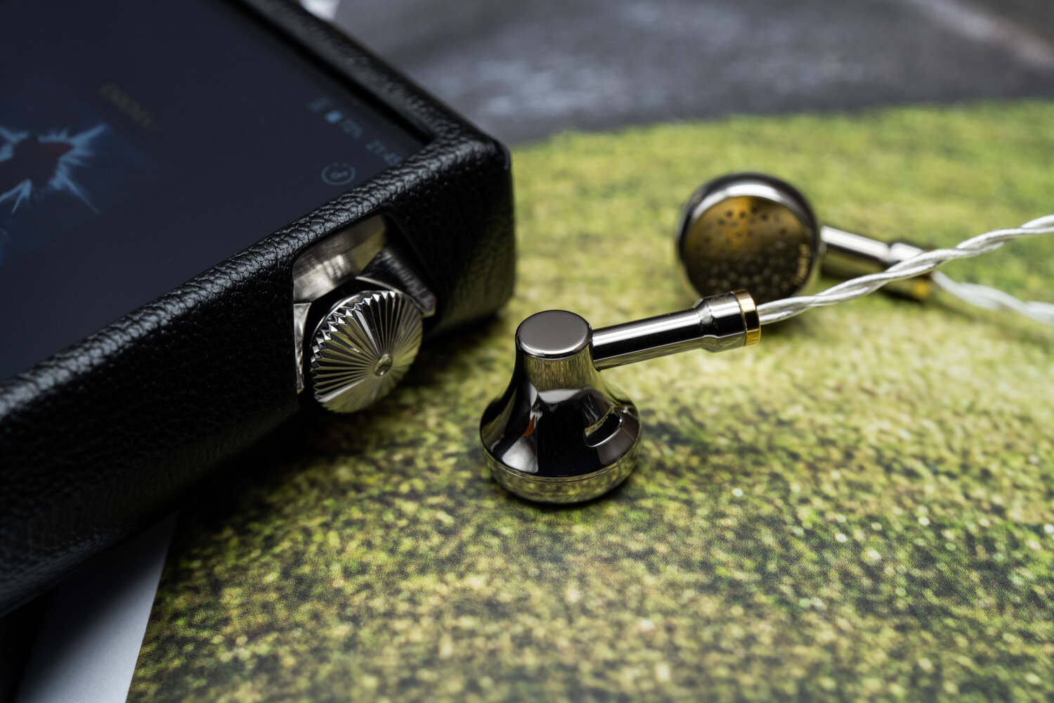 年华的外观脱胎自TEA99,但换用了钛壳且工艺方面要考究很多;用TEA99时我总觉得腔体太轻加上外壳直径过小,经常一碰就掉;但年华在这方面应该是做了优化,佩戴牢固了很多。年华的外观质感很强,腔体外径不大,耳柄较短因此也可以绕耳佩戴。由于腔体有强烈的金属质感,再加上纤细的银白色线材和独立开模的可更换插头(标配3.5/4.4),以及手工达人Kevin手制的皮质收纳盒,整体呈现的实物精致感非常强,足以让不少人爱不释手。年华这塞子有两个版本,一是60Ω版(999元),外壳为钛原色;二是80Ω版(1588元),外壳为亮面电镀。从工艺和定价来看80Ω版的定位是“旗舰”;从购买年华的烧友反馈来看,两条塞子声音也是有明显区别的,60Ω版似乎更适合流行人声,中频距离稍近而凝聚度更高,声音更有亲和力;80Ω的版本貌似更适合古典器乐,有着更大的声场和更强的动态表现,而中频人声距离稍远。我手上只有80Ω的版本,所以本文就不去扯60Ω的声音了,单纯说说80Ω版本的听感。
