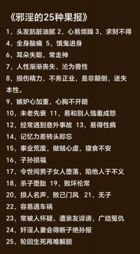 愿天下人都能洁身自好,都能明白“色乃剐骨钢刀”,色字头上一把刀,能戒邪淫就要戒,即使是夫妻也要适当节制。总之要保护好自己身上的精元。身体健康,有生命在,才有更漂亮的生命之花。命没了你还有什么呢?感恩,感谢!愿大家引以为戒,以此为鉴。