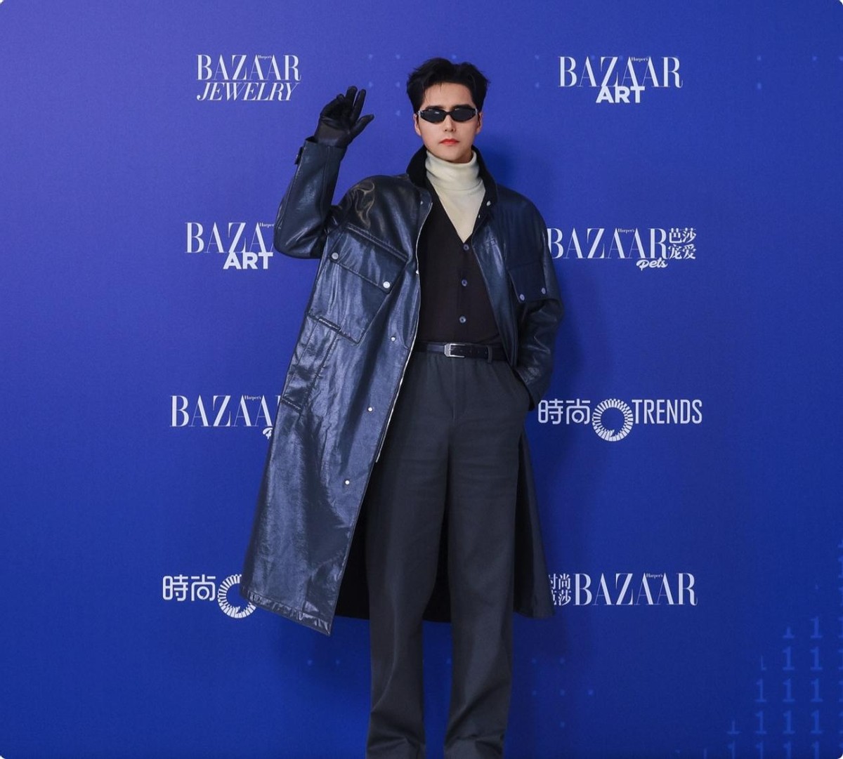 最关键的是,他184cm的身高,将长款皮衣驾驭得恰到好处,衣长刚好到小腿中部,既不会压个子,又能营造出潇洒不羁的气场。