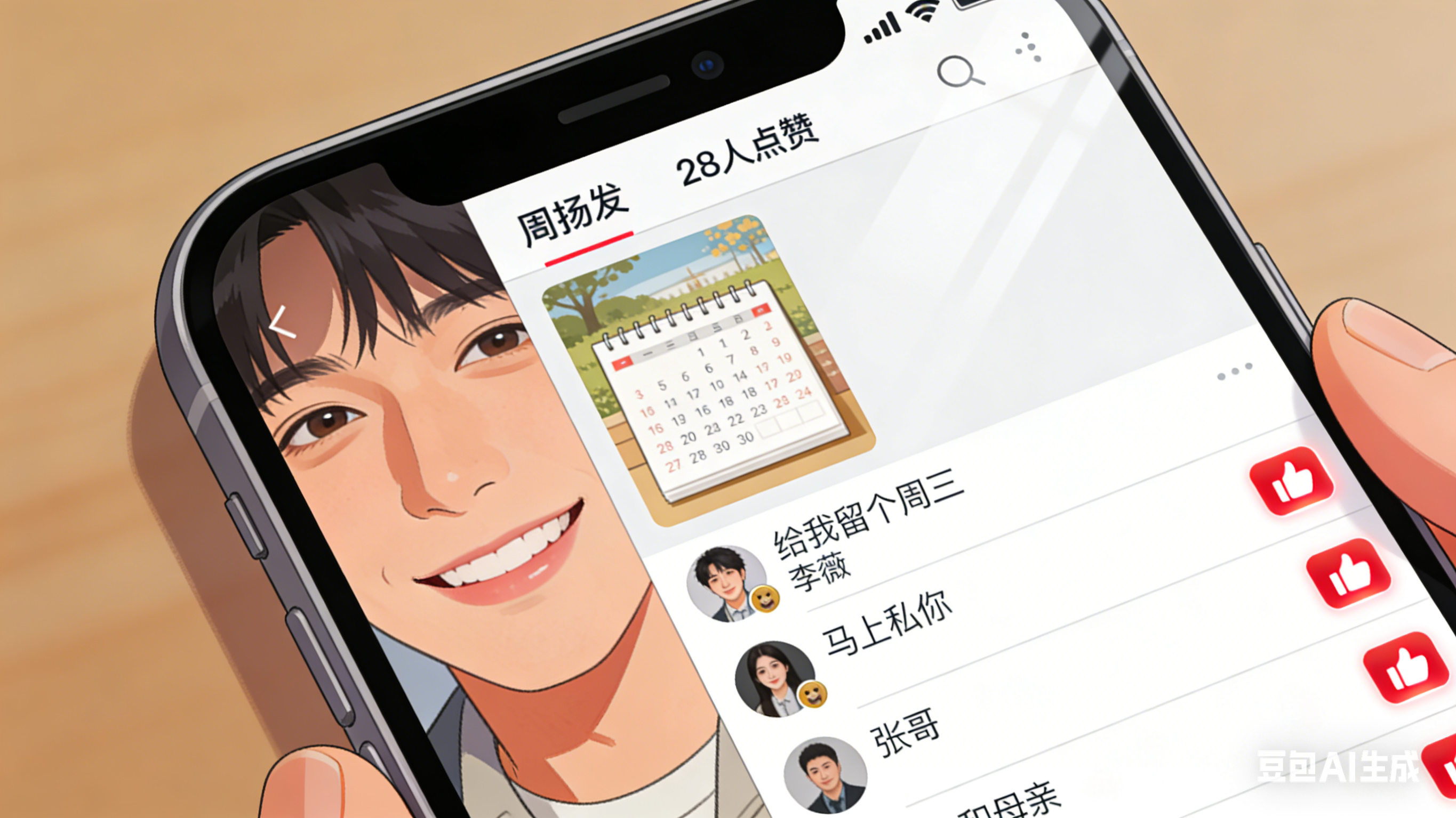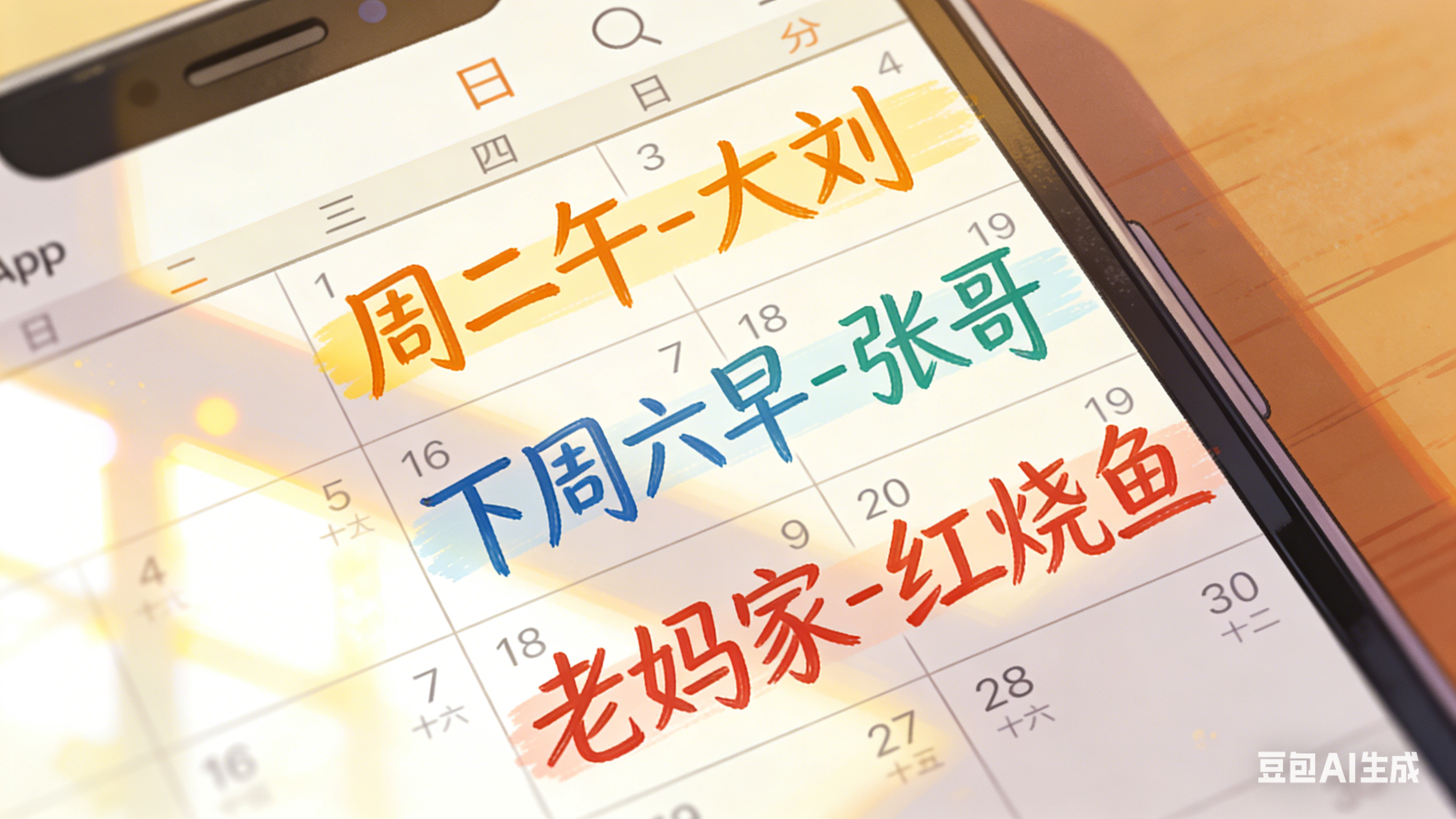 周五晚,周扬发了张日历截图,上面标注着“周二午-大刘”“下周六早-张哥”“老妈家-红烧鱼”,配文:“把‘改天’,写进日历里。”评论区很快热闹起来,李薇要留位置,陈浩说查好日历,母亲也笨拙地点了赞。